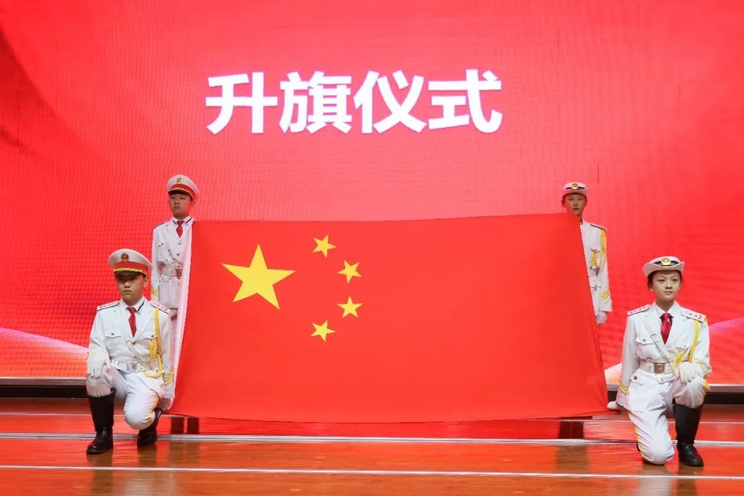 伴随着雄壮的国歌声,鲜艳的五星红旗冉冉升起,全校师生的目光汇聚于那面鲜艳的旗帜之上,这一刻,每个人的心中都充满了对祖国的热爱和对历史的敬畏。