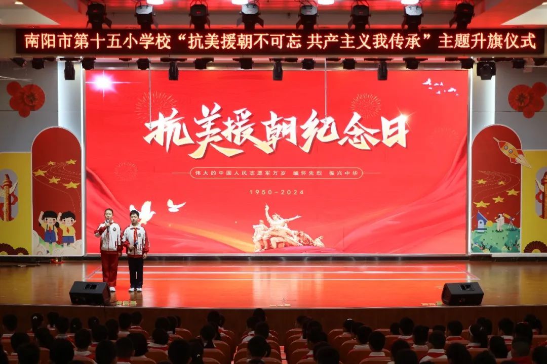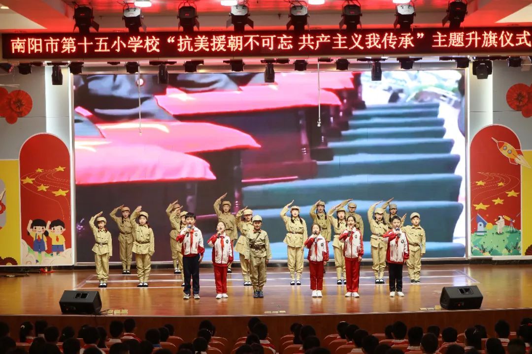 | 抗美援朝精神不朽 共产主义由我传承——南阳市第十五小学校孔明路校区纪念抗美援朝74周年主题升旗仪式 |