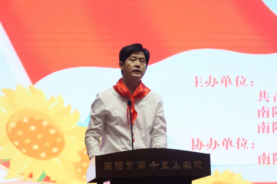 共青团南阳市委副书记王庆峰、南阳市少工委主任吕予宛以及各校区德育校长、大队辅导员分别发表讲话,对新队员表示热烈的祝贺和殷切的期望。
