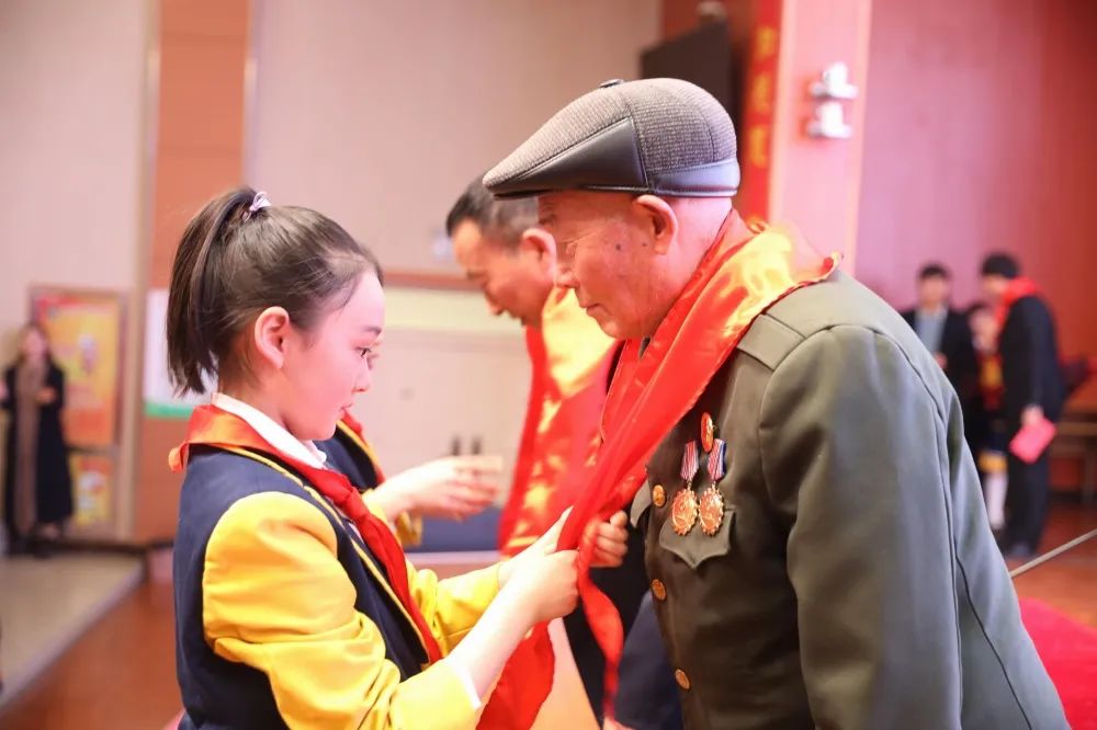 活动伊始,全体少先队员齐唱《学习雷锋好榜样》,优秀少先队员代表为两位老战士献花,热烈欢迎二老走进十五小校园。