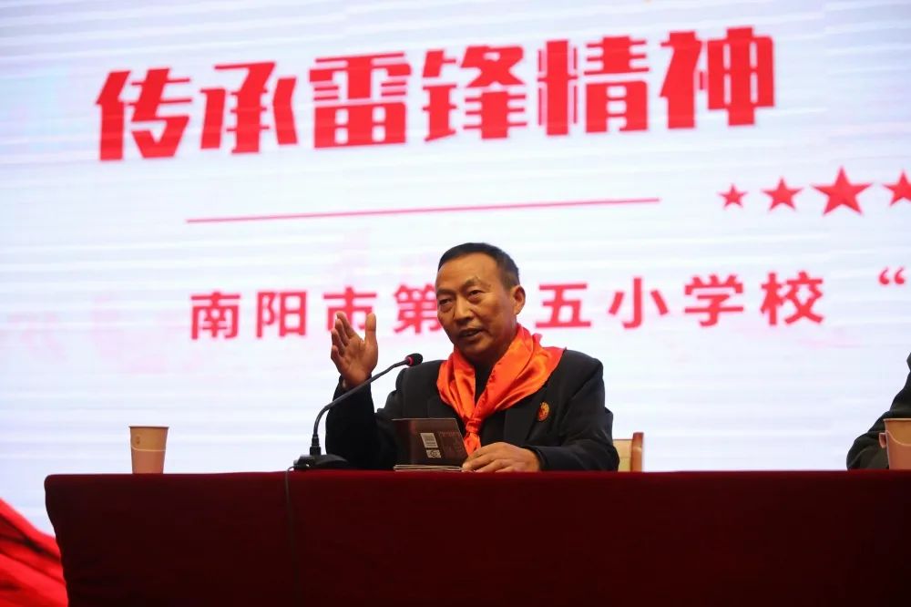 不靠雷锋沾光,要为雷锋争光。邓州编外雷锋团副团长孙天训给少先队员们讲述了“编外雷锋团”的创建历史。