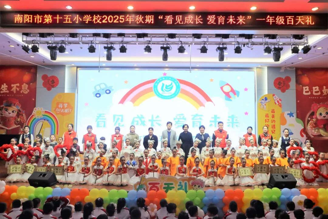 时光清浅,岁月如歌。转眼之间,2025级一年级新生已入学百日。古往今来,“礼”字贯穿成长始终,是启蒙养正的根基,是立德树人的起点。百天之礼,尤为初心之重,饱含着对童真的珍视与对未来的殷殷期盼。2025年12月10日,南阳市第十五小学校教育集团四大校区同步举行了一场温馨而隆重的一年级新生入学百天礼庆典。百天的蜕变,是家校携手写下的温暖序章。往后的日子里,愿孩子们带着南阳市第十五小学校的期许,在知识里探索,在欢笑里成长,更要带着百天里积攒的勇气,不断努力、勇敢追梦,在“和爱”的校园沃土上,把每一份热爱都化作前行的动力,去奔赴属于自己的辉煌未来。