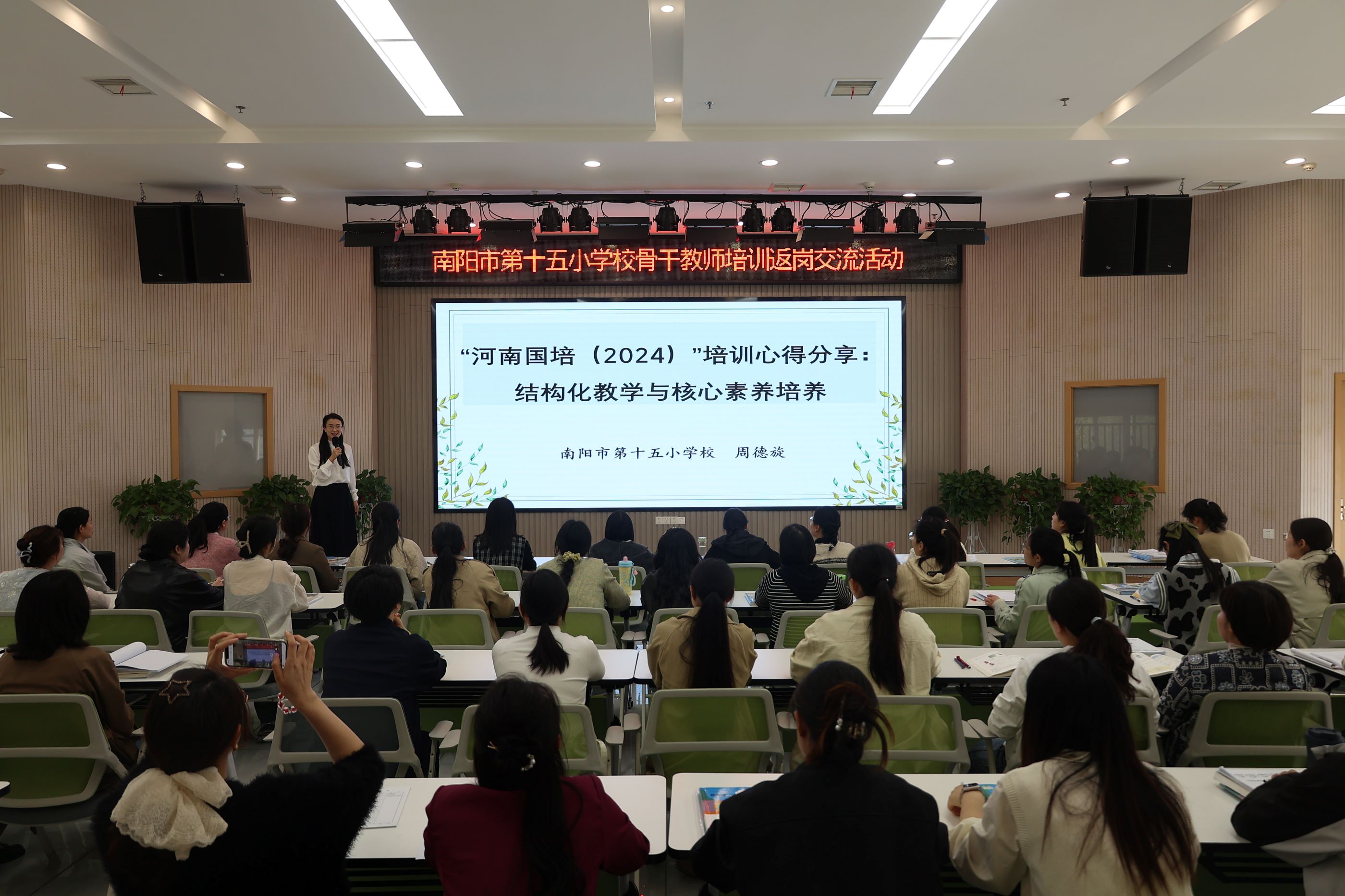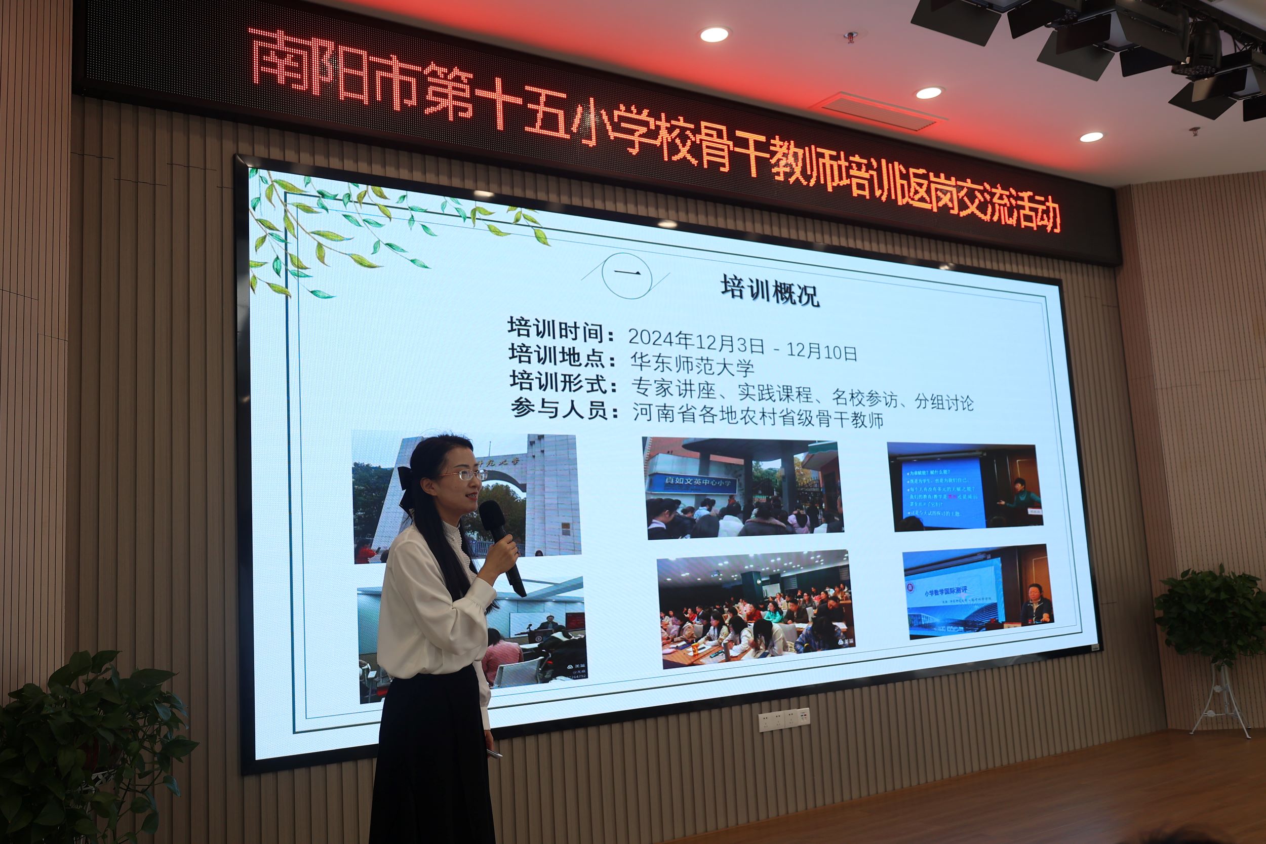2025年4月7日,我校数学周德旋老师面向全体数学教师开展"国培返岗"专题分享活动。作为河南省教育厅选派的省级骨干教师代表,周老师于2024年12月3日至10日参加了由华东师范大学承办的"国培计划(2024)"农村省级骨干教师能力提升研修项目。