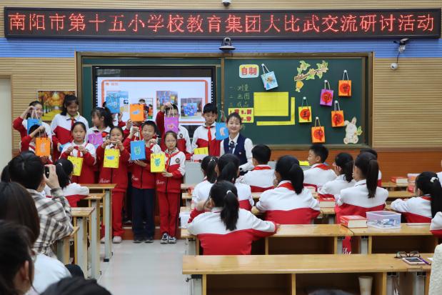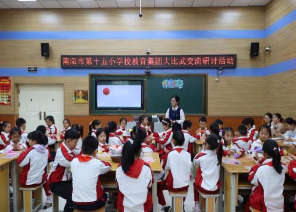 2023年是南阳市“十万教师课堂教学大比武”活动的深化之年。9月26日至28日,2023年度秋期“十万教师课堂教学大比武”市级现场赛在13个赛区,76个赛点顺利举行。 本次大比武,南阳市第十五小学校共有24名优秀教师参加了小学12个学科的竞技。这些教师,都是今年春期校级“课堂教学大比武”涌现出的教学能手。为了能在大比武中精彩展示,各学科都成立了磨课团队,精心打磨,全力备赛。高手如云的赛场上,我校教师凭借新颖的设计、沉稳的表现、过硬的基本功,赢得赛点评委的交口称赞。比赛结束,依据各赛点现场宣布的得分,我校取得了语文、英语学科赛点第一名,体育、美术、劳动、心理健康、道德与法治、综合实践六个学科全市第一名的优异成绩。 市级大比武活动刚刚落下帷幕,十五小深化大比武成果的活动就全面铺开了。为了让大比武中的成果和收获得以推广,让全体教师受触动、深思考、得长进,10月10日至20日,学校举行为期两周的校级大比武课例展示研讨活动,全体教师参与,活动内容是“两听一说”:听大比武参赛课,听教师评委分享心得,说个人收获和思考。