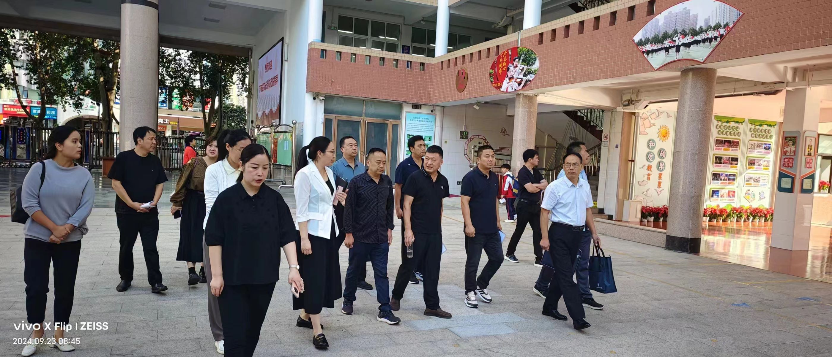 观摩团在教学人员的带领下,有序参观校园环境以及学校社团开展情况。