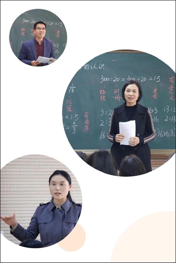 数学:李欣老师执教的是《用字母表示运算定律和计算公式》;杨春峰老师执教的是《烙饼问题》;田根老师执教的是《比的认识》。