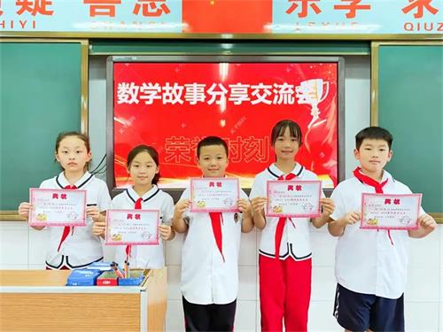 同学们的精彩演讲得到了老师和同学们的一致好评,老师们为班级优秀者颁发“数学故事大王”奖状。可爱的孩子们带着灿烂的笑容,尽情享受着成功的果实。 本次故事分享会虽然已经结束,但一个个看似简单的数学故事,却带着数学文化,在孩子们心里印上美丽的数学烙印。让我们期待下一次美妙的数学文化之旅吧! |