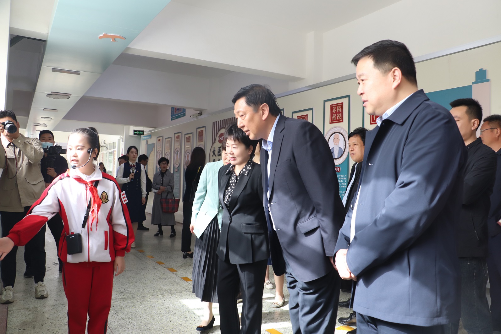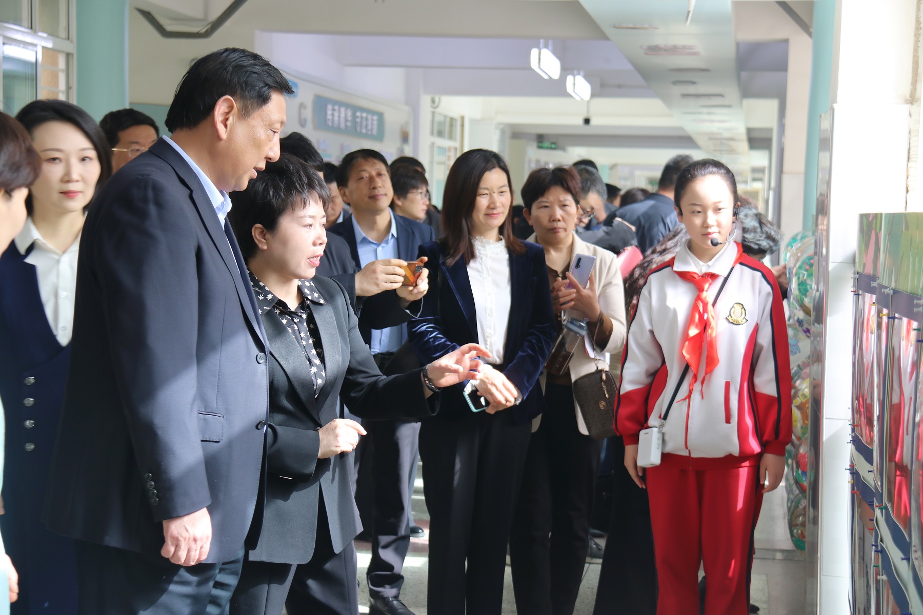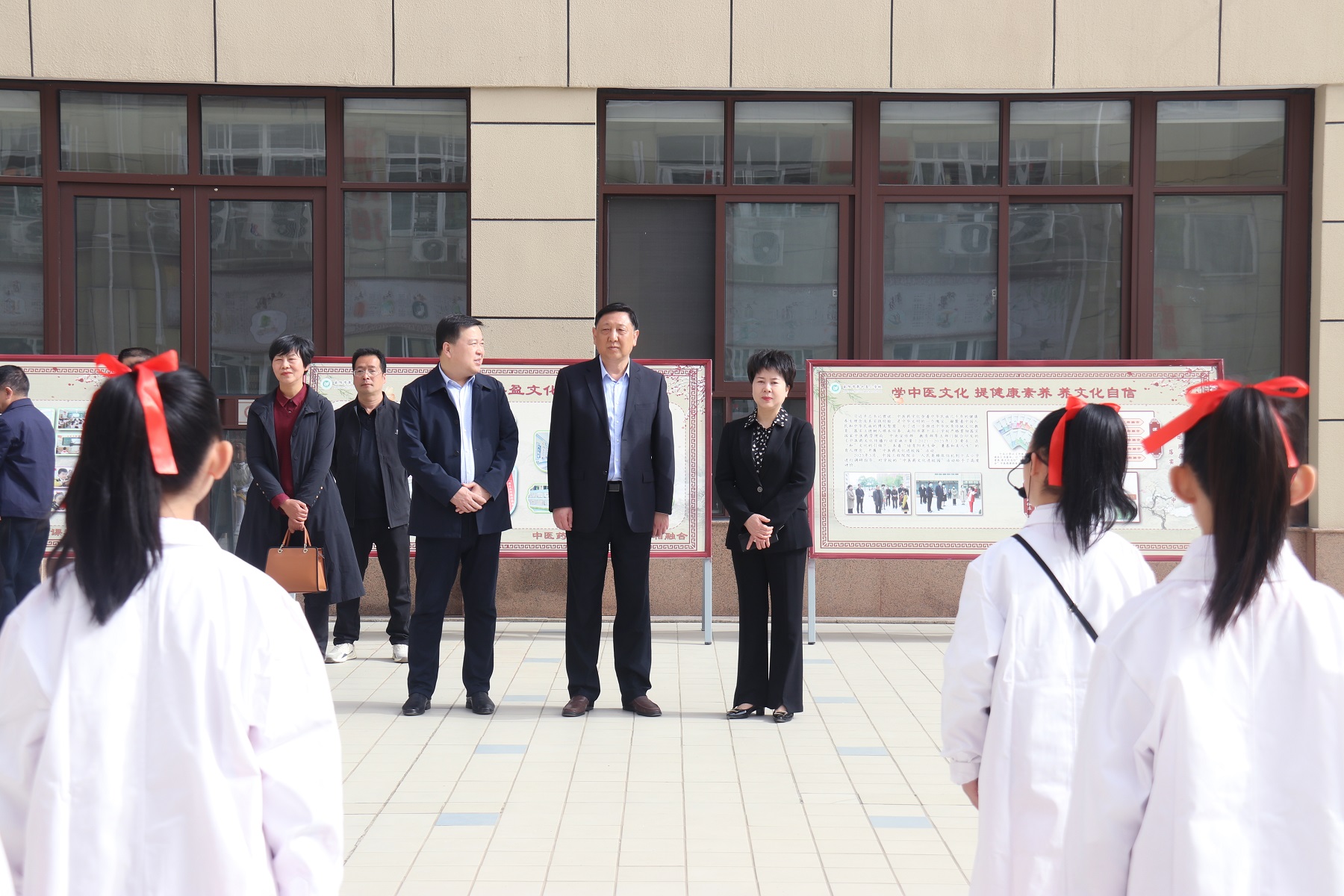 2023年4月12日上午,全市“中医药文化进校园”工作现场观摩推进会在南阳市第十五小学校孔明路校区召开。 南阳市教育局党组成员、副局长乔栓旺,市中医药发展局党组成员、副局长杨运卿,及相关科室负责人,县市区教体局分管“中医药文化进校园”工作的副局长、基教科长,市教育局局属义务教育学校副校长,中心城区和油田“中医药文化进校园”试点学校校长走进十五小学,观摩“中医药文化进校园”活动的开展情况。