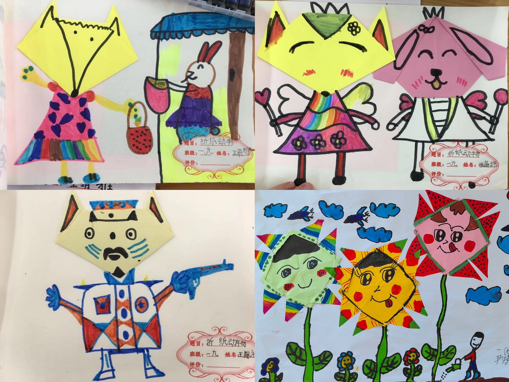 美术学科依托基础课程的“养分供给”,基于南阳市第十五小学校“和”文化发展和育人目标,依据学生的认知特征,在不同年级设置具有学校特色的校本课程,开展了小学美术校本纸艺教学特色研究。在2011年被河南省确立为美术学科校本试验基地。 从课程理论看,纸艺文化属于学校的隐性课程,它对学生在学校范围内所引起的多元智能的增长、艺术鉴赏能力的提高、创新意识的培养等,有着紧密的联系和深刻的影响。 低年级以折纸课程展开,开设有对称折、中心折等不同系列课程。