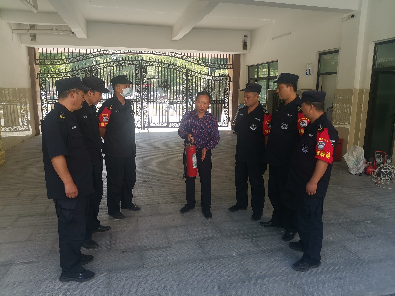 为进一步提高安保人员消防安全意识和技能,提高应对校园突发火情的应急处置能力,5月10日上午,我校后勤处组织全体保安人员开展了消防器材使用及消防安全应急处置培训。
